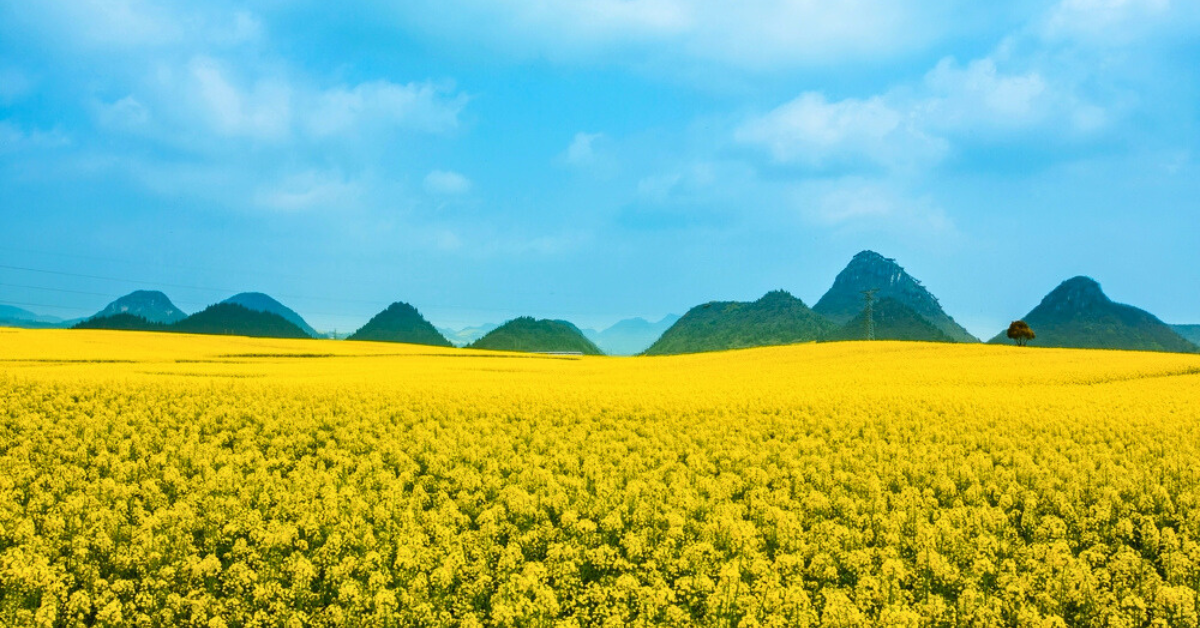 Luoping in Yunnan Province, China becomes a sea of gold that contrasts beautifully with the clear blue sky during spring. Abundant fields of bright yellow Canola and Rapeseed flowers surrounding Jinji Peak arrive in full burst. The landscape is a photographer’s dream, wandering through the vast fields. Immerse yourself in local culture: cooking classes here highlight the usage of the freshly-produced oils extracted from the flowers.