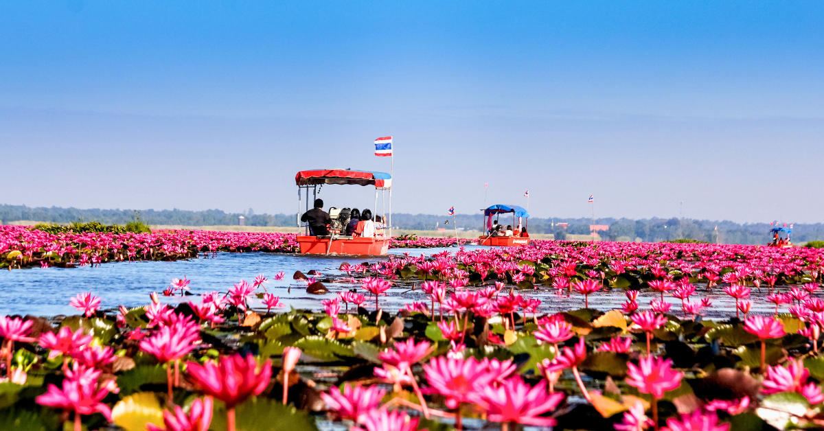 Charter your private flights to the nearest airport Udon Thani International Airport (UTH), then take a thrilling 45-minute VIP ride to the stunning Red Lotus Lake.